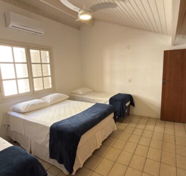 Flat com sala ampla com sofá e Smart TV Led 43″, cozinha estilo americana equipada com pia, fogão, geladeira frost free, micro-ondas, grill, cafeteira eletrica e utensílios em geral (louças, panelas e talheres), area externa privativa com tanque e quarto amplo com ar condicionado Split, cama de casal e 2 camas de solteiro podendo acomodar até 4 pessoas. *Os valores variam conforme o número de pessoas.